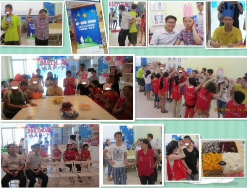 炎热的午后夹着一阵阵微风,令昏昏欲睡的学员们顿时清醒过来,因为我们要开生日会了。2015年8月11日下午,盐田社工服务中心驻仁爱社工与仁爱康复服务中心、仁和社工服务中心联合开展的工行志愿者牵手星星的孩子融乐活动暨生日Party在星娃小站隆重举行,此次活动除了庆祝学员的生日以外,更重要的是让大家更多更好的接触“他们”—“星星的孩子”,认识和理解自闭症孩子的真实面目,给予他们更多的关怀和爱护,使他们能正常的融入社会这个大家庭。
