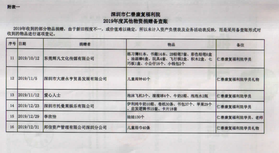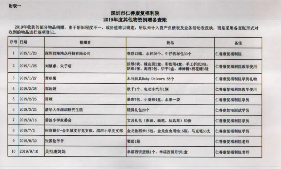 2019年仁善中心鸣谢一览表